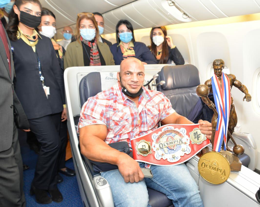 بالورود والنداء الصوتي ...مصرللطيران استقبلت البطل العالمي بيج رامي