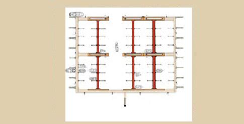فنجد أن الممرات والسفن الراسية يتم تحريكهم في آن واحد بشكل متزامن، ويتم إجراء هذه التحركات عن طريق أنظمة سحب عائمة بمحركات موزعة على مسافات منتظمة على المراسي، وبفضل سلاسل الجنازير المتحركة على تروس، يمكن في نفس الوقت توفير مساحة تحرك للسفن التي تطلب ذلك.