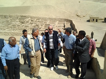 واستكمل وزير الآثار جولته الي موقع دير المدينة بالبر الغربي بالاقصر، حيث تابع اعمال البعثة الفرنسية الجارية في احدى المقاصير الفرعونية الخاصة بواحد من الآلهه المصرية القديمة ، مطالبا باقامة مركز للزوار يحكى تاريخ مدينة العمال بالمنطقة وعمل نموذج لاحد البيوت الخاصة بهم بما يعكس الطراز المعماري لبيوت الافراد وطبيعة حياتهم اليومية .