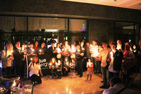 حرصاً من إدارة فندق هيلتون بيراميدز جولف ريزورت على المساهمه فى نشر الوعى بساعة الارض فقد قرر فريق الطاقه الزرقاء اقامة حفل لنشر التوعيه مع النزلاء المقيمين بالفندق من خلال تقديم وشرح ما هى ساعة الارض واهمية التوفير فى الطاقه والكهرباء واقيمت مسابقات بين ضيوف الحفل حول مفهوم ساعة الارض.