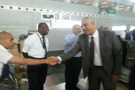 التقى الطيار شريف عزت بأفراد البعثة المكلفة بخدمة الحجاج في مرحلة العودة بمطار جدة الدولي بحضور رؤساء المجموعات من المحطة والحجز والعلاقات العامة والأمن والخدمات الأرضية والصيانة وتخطيط الشبكات والعمليات والسيطرة وغيرها للتأكيد على الإلتزام بتنفيذ كافة التوجيهات وحثهم على تقديم كافة التسهيلات اللازمة وتسخير كافة امكانيات اقليم مصرللطيران بالسعودية لخدمة ضيوف الرحمن والتنسيق مع جميع الجهات المعنية في المطارات المصرية والسعودية لتفادي اية مشكلات قد تنجم نتيجة كثافة التشغيل
