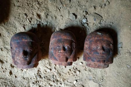 وأوضح د. عشماوي، أن البئر يضم ثلاث حجرات للدفن وجدت البعثة بداخلهم جزء علوي من تمثال مصنوع من الحجر الرملي يبلغ ارتفاعه 40سم لشخص يعقد يده اليسري على صدره، بالاضافة إلي جزء أوسط لتمثال آخر مصنوع من البازلت ارتفاعة 30 سم، وعدد من الأوانى الفخارية وثلاثة رؤوس للاأوانى الكانوبية على هيئة أدمية طول الرأس حوالى 10 سم و لكن وجد بعضها مهشم، كما عثر بداخل احدهم علي احشاء المتوفى.