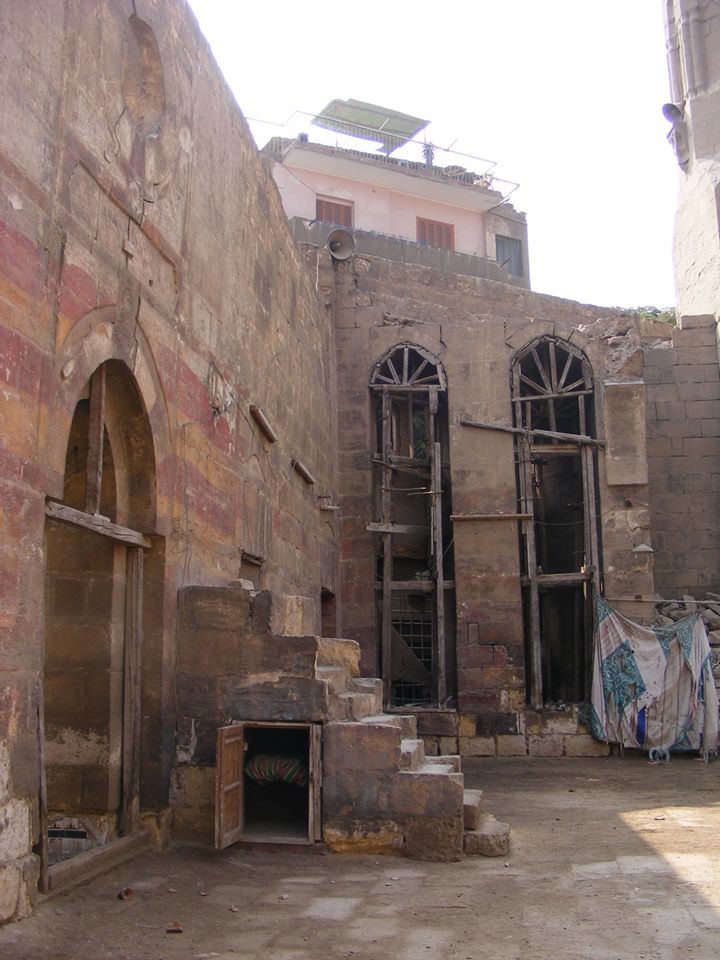 منشئ هذا المسجد فى مبتدأ أمره – والحديث لحسن قاسم فى المزارات الإسلامية – هو الأمير سيف الدين تنكز بغا بن عبدالله الماردينى شاد الشرابخاناه عند السلطان الناصر حسن بن الناصر محمد بن المنصور قلاوون سنة 756هـ / 1355م برسم مدرسة للشافعية ودارا للحديث النبوى الشريف " آثر رقم 163" . يذكر الصفدى فى أعيان العصر وأعوان النصر ( كان الأمير تنكز بغا حظيا عند الملك الناصر حسن وبالغ فى تقريبه ، واعتمد على عقله وتجريبه ، فنوله ما شاء من الوجاهة ، وخوله فيما اراد من فضل ونباهة ) . ومازال نجم تنكز بغا فى صعود حتى تزوج أخت السلطان الناصر حسن المعروفة بخوند التنكزية نسبة الى زوجها الأمير تنكز بغا فعظم قدره وصار من أكابر الأمراء بالديار المصرية . وفى عام 755هـ ولاه السلطان الناصر حسن وظيفة أمير مجلس – أى المسؤل عن مجلس السلطان وتنظيمه وترتيب الجلوس فيه – .وفى شهر شوال عام 759هـ توفى الأمير تنكز بغا بن عبدالله الماردينى ودفن بخانقاه كان قد شرع فى انشائها بمنشية ناصر " أثر رقم 85" ولكن المنيه ادركته دون ان يتمم الخانقاه فلعل أرملته خوند التنكزية قد أكملتها من بعده وكانت قد امتد العمر بها حتى توفيت فى شهر صفر عام 802هـ . ويعلو مدخل خانقاه الأمير تنكز بغا بمنشية ناصرازار كتابى نصه ( أمر بأنشاء هذه التربة المباركة العبد الفقير تنكز بغا أمير مجلس الأحكام بتاريخ ربيع الأول سنة أربع وستين وسبعماية ) .