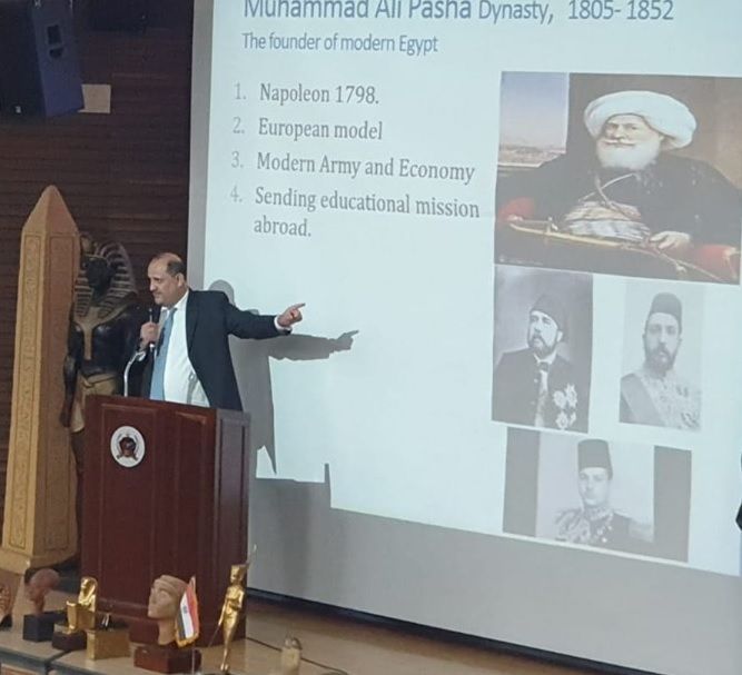 تطرق سفير مصر في سول لأبرز محطات التاريخ المصري المعاصر ابتداءً من عصر محمد علي، مؤسس الدولة الحديثة، إلى وقتنا الحالي، مُشيراً لأهم الملامح السياسية والثقافية والاجتماعية لتلك الفترة، وذلك بمشاركة نحو 100 طالب كوري بمدرسة "جويانج" العالمية الثانوية في مدينة "جيونج جي" المتخصصة في التعليم الدولي والدراسات الأجنبية.