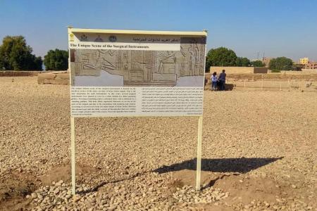 وتتضمن اللوحة الإرشادية الجديدة صورا لأدوات الجراحة الطبية الموجودة بالنقش الأصلي وشرح مختصر لها.