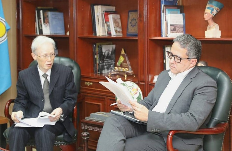 استقبل الدكتور خالد العنانى وزير السياحة والآثار، سفير دولة اليابان بالقاهرة ماساكي نوكي، ومدير الوكالة اليابانية للتعاون الدولي"الجايكا" في الشرق الأوسط وأوروبا السيد ساكاموتو تاكيما، والوفد المرافق لهما، وذلك بمقر الوزارة بالزمالك، لبحث تعزيز سبل التعاون علي المستوي السياحي والأثري خلال الفترة المقبلة وخاصة في ظل الاستعداد للاحتفال بافتتاح المتحف المصرى الكبير في الربع الأخير من عام 2020.