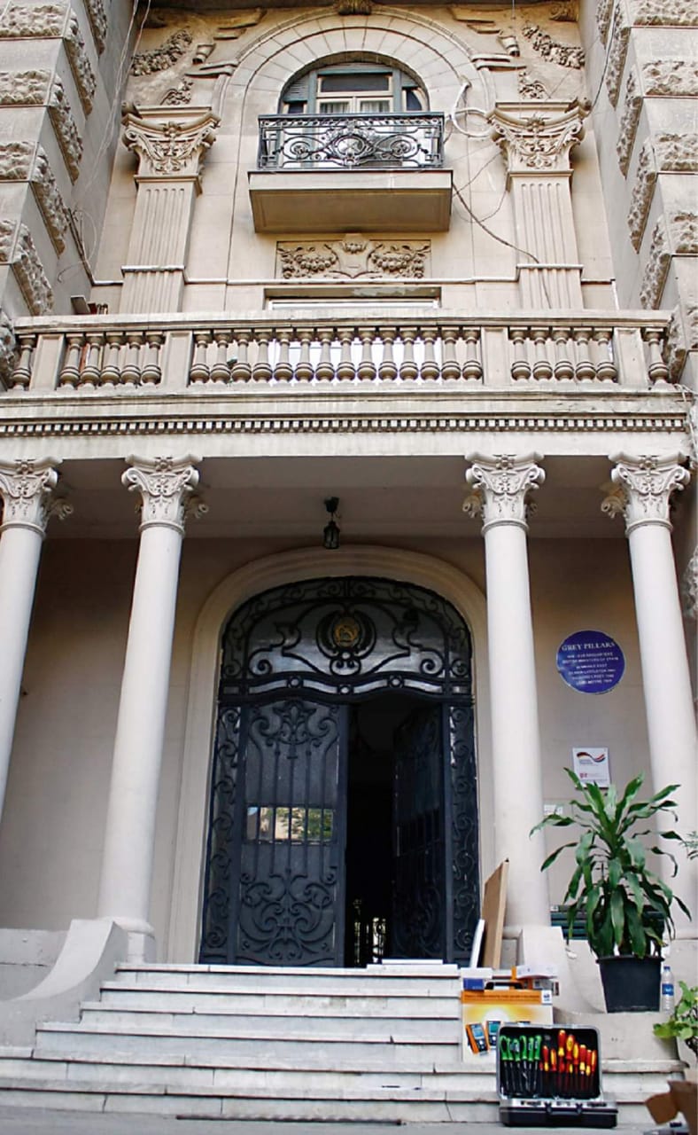 عمارة Grey Pillars فى10 شارع الطلمبات (حاليًا شارع اتحاد المحامين العرب) بحى جاردن سيتى، فى يوم من الأيام كان مقرًّا لإدارة الحرب العالمية الثانية، والمبنى عمارة ضخمة مُكوَّنة من بضعة طوابق يُحيط بها حديقة وسور، وقبوُها الآن هو كافيه Room art space&Cafe، والعمارة مبنية على الطابع الأوروبى مثل معظم المبانى القديمة المتبقية فى حى جاردن سيتى، وعلى الرغم من تشابه المبنى مع أقرانه من المبانى القديمة فى المنطقة، فإن العمارة رقم 10 كان لها وضع خاص أثناء الحرب العالمية الثانية، التى لاتزال أحداثها وأسرارها تُشغل بال الباحثين والسياسيين والسينمائيين.