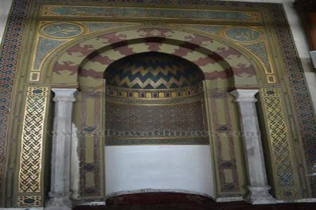 * ضعف الإضاءة بإيوان القبلة نتيجة قلة عدد تفتحات بجدار الإيوان وسد بعضها نتيجة تعامد العقود عليها.