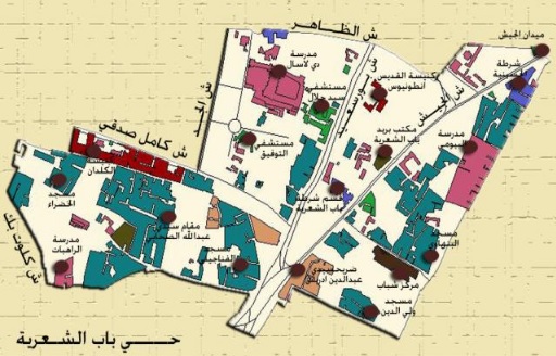 وفضلا عن ذلك فإنه كان هناك باب يسمي باب الشعرية والذى كان أحد بابين متواجدين في جزء من السور الشمالى للقاهرة الذى شيده بهاء الدين قراقوش وزير السلطان صلاح الدين الأيوبي في أواخر القرن الثاني عشر الميلادى وكان ذلك الجزء من السور الشمالى به أيضا باب آخر يسمي باب البحر وكان هذا السور يمتد بين الناصية الشمالية الغربية لحصن القاهرة الفاطمى وبين قلعة المقس التى بنيت عند ضفة النيل في ذلك الوقت وكان موضعها مجاورا للمنطقة مكان جامع المقس الذى كان قد شيده الخليفة الفاطمي السادس الحاكم بأمر الله في بدايات القرن الحادى عشر الميلادى والذى بنيت مكانه حاليا مؤسسة الفتح وجامع أولاد عنان الحالي في ميدان رمسيس والذى تم إفتتاحه في ذكرى الإسراء والمعراج في يوم 22 فبراير عام 1990م حيث كان النيل يصل حينذاك حتي هذه المنطقة والتي كانت تعرف بإسم قرية أم دنين حيث مقر الأسطول البحري للدولة الفاطمية ومكانا لصناعة السفن الحربية والذي أنشأه الخليفة الفاطمي الرابع المعز لدين الله ليكون المكان الذي يخرج منه الأسطول البحري فى غزواته وقد سميت هذه القلعة والمسجد أيضا بقلعة وجامع المقس وهي كلمة محرفة من كلمة المكس وهى المكوس أي الضرائب التي كانت تحصل على البضائع القادمة إلى مصر من خلال الميناء النهرى على النيل .