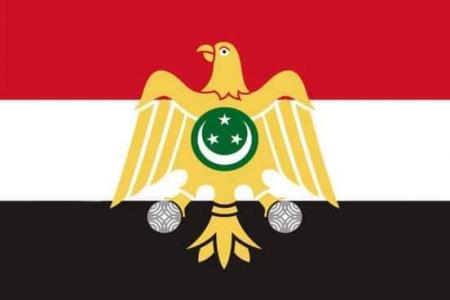 * وتحول العلم إلى الجمهورية العربية المتحدة، عقب إعلان الوحدة الفيدرالية بين مصر وسوريا، وأصبح الإقليم الجنوبى يشير إلى مصر، والإقليم الشمالى يشير إلى سوريا واستبدل النسر فى العلم إلى نجمتين خماسيتين خضراوين إشارة إلى مصر وسوريا.