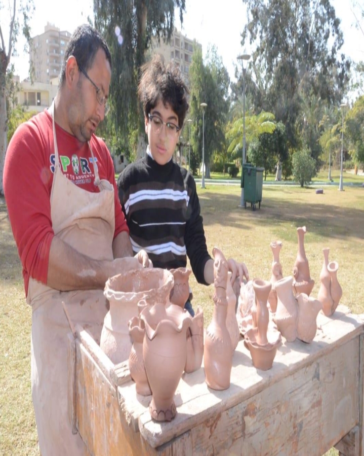 وإلي جانب معرض البيع ، يشترك الزوار مع العارضين فى تنفيذ ورش عمل متنوعه ومتخصصة للحصير والنسيج والخياميه والخزف وفنون التريكو والكروشيه وأشغال الصدف والخيزران ورسم الحنة لتعلم مبادئ هذه الحرف والفنون.