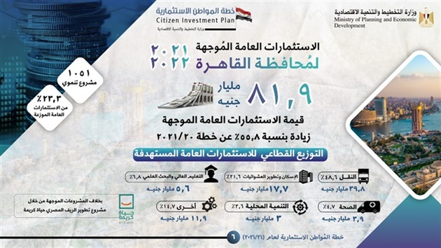 أعلنت وزارة التخطيط والتنمية الاقتصادية في تقرير صادر عنها ملامح خطة المواطن الاستثمارية لمحافظة القاهرة لعام 2021/2022 ، وذلك في إطار مواصلة الإعلان عن خطة المواطن في كافة محافظات الجمهورية للعام الثالث على التوالي، بهدف توعية المواطنين بشأن توجهات وأولويات خطة التنمية المستدامة للعام المالي (2021/2022)، ودورها في تحقيق “رؤية مصر 2030″.