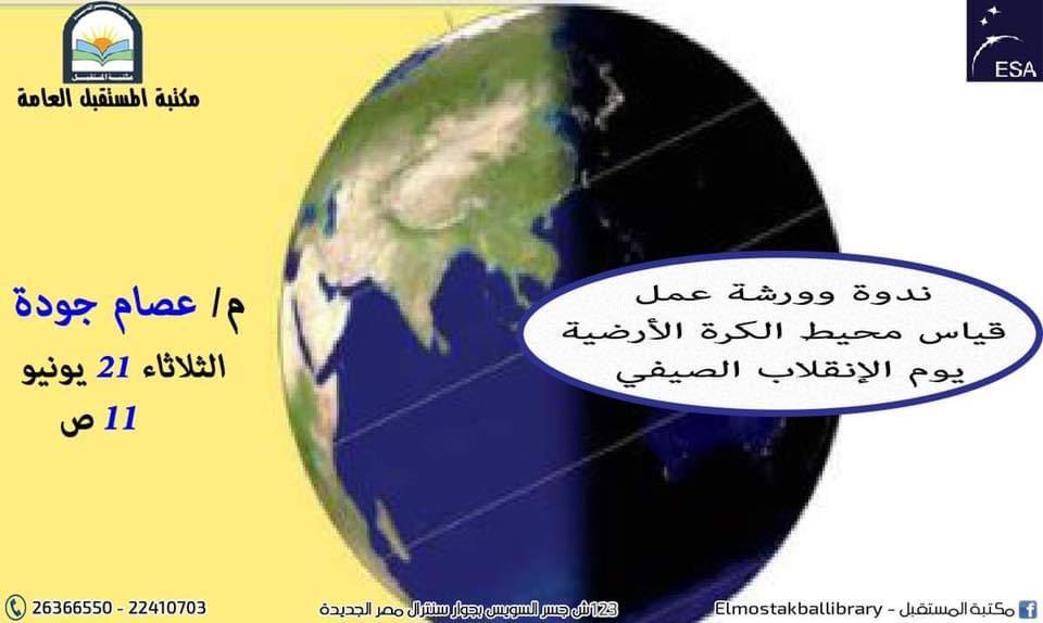 اعلن الدكتور نبيل حلمى ، رئيس مجلس ادارة جمعية مصر الجديدة عن تنظيم ورشة عمل تفاعلية تتناول الطرق الحديثة لقياس محيط الكرة الارضية في عدة محاور منها ما هو كوكب الارضية ، كم يبلغ محيط الكرة الارضية ، ما هو قطر الكرة الارضية ، من اول من قاس محيط الارض حقائق عن الكرة الارضية ، يقدم الورشة: م/ عصام جودة ، رئيس الجمعية المصرية لعلوم الفلك وعضو الإتحاد العربي لعلوم الفضاء والفلك .وتنفذها مكتبة المستقبل احدى منصات الثقافية بجمعية مصر الجديدة ، الساعة 11 من صباح غد الثلاثاء .