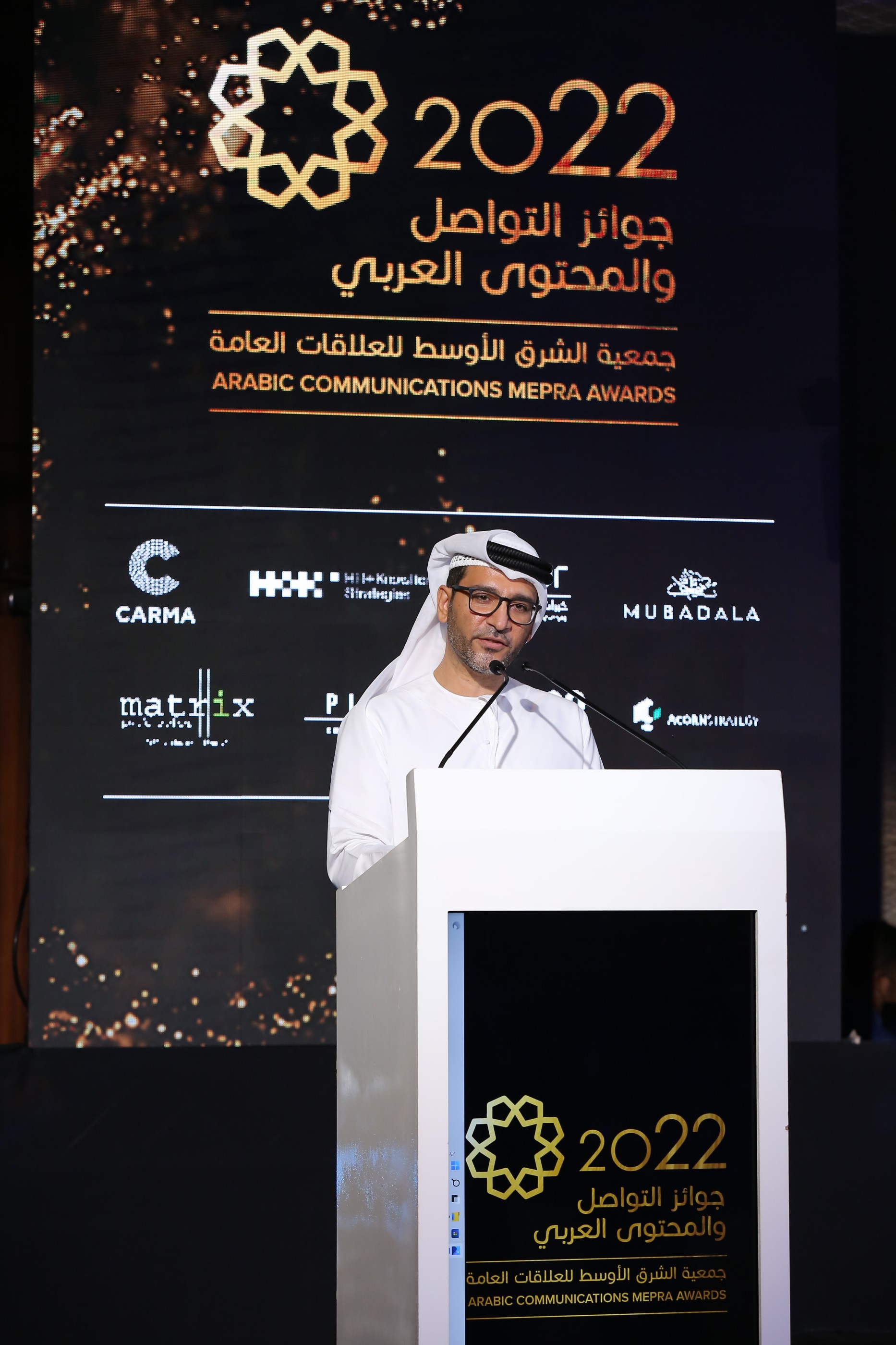 في كلمته الرئيسية، أشاد راشد العوضي، المدير التنفيذي لأكاديمية الإعلام الجديد ونائب رئيس مجلس إدارة جمعية الشرق الأوسط للعلاقات العامة ميبرا، بجميع الفائزين والمرشحين لتفانيهم في التواصل باللغة العربية وشجعهم على استخدام مهاراتهم ومعرفتهم لتقديم حملات العلاقات العامة العربية التي تؤثر على المجتمع بشكل إيجابي.