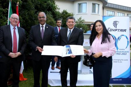 كما قام الطيار عمرو نبيل رئيس مجلس إدارة شركة مصرللطيران للخطوط الجوية بزيارة لجمهورية أيرلندا على خط مصر للطيران الجديد من القاهرة إلى دبلن وشارك خلال زيارته في احتفالية ذكرى الثورة، وخلال فترة الاحتفالات قام ممثلو مصر للطيران باستعراض آخر العروض الترويجية وسياسات الشركة خلال الفترة الحالية والتي تأتي تزامناً مع احتفالها بعيدها التسعين كأول شركة طيران أنشئت في الشرق الأوسط وأفريقيا، بالإضافة إلى تقديم الدعوة للضيوف لزيارة مصر والاستمتاع بالمناطق السياحية والأثرية.