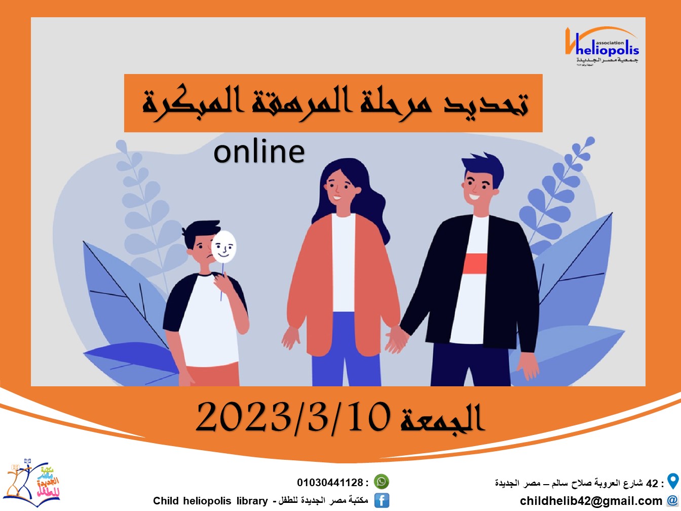اعلن الدكتور نبيل حلمى رئيس مجلس إدارة جمعية مصر الجديدة عن أن مكتبة مصر الجديدة للطفل تنظم ندوة بعنوان " تحديات مرحلة المراهقة المبكرة" ، تتناول الندوة معنى سن المراهقة ومراحلها المختلفة والتغيرات الفسيولوجية التى تحدث فى الجسم من نمو جسدى والنضوج الجنسى و والتغيرات النفسية .
