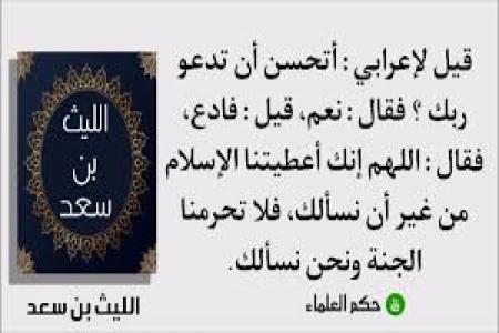 ومما روى عن فقه الإمام الليث بن سعد قول المؤرخ والمحدث أبي نعيم الأصبهاني عن راوى الحديث الفقيه الحسن بن مليحٍ حدثنا لؤلؤ خادم الخليفة العباسي هارون الرشيد قال جرى بين الخليفة هارون الرشيد وبين زوجته وإبنة عمه زبيدة بنت جعفر مناظرةٌ وملاحاة في شئٍ من الأشياء فقال هارون لها في عرض كلامه أنت طالق إن لم أكن من أهل الجنة ثم ندم وإغتم كلاهما بهذه اليمين ونزلت بهما مصيبة لموضع إبنة عمه منه فجمع الفقهاء وسألهم عن هذه اليمين فلم يجد منها مخرجا ثم كتب إلى سائر البلدان من عماله أن يحمل إليه العلماء والفقهاء من بلدانهم فلما إجتمعوا جلس لهم وأدخلوا عليه وكنت واقفا بين يديه لأمر إن حدث يأمرني بما شاء فيه فسألهم عن يمينه وكنت المعبر عنه وهل له منها مخلص فأجابه الفقهاء بإجابات مختلفة وكان إذ ذاك فيهم الليث بن سعد فيمن أشخص من مصر وهو جالس في آخر المجلس لم يتكلم بشئ والخليفة هارون الرشيد يراعي الفقهاء واحدا واحدا فقال بقي ذلك الشيخ في آخر المجلس لم يتكلم بشئ فقلت له إن أمير المؤمنين يقول لك ما لك لا تتكلم كما تكلم أصحابك فقال قد سمع أمير المؤمنين قول الفقهاء فإذا أراد أن يسمع كلامي فليخلي مجلسه فصرف أمير المؤمنين من كان بالمجلس من الفقهاء والناس ثم قال للإمام الليث تكلم فقال يدنيني أمير المؤمنين فقال ليس بالحضرة إلا هذا الغلام وليس عليك منه عين فقال الليث يا أمير المؤمنين أتكلم على الأمان وعلى طرح التعمل والهيبة والطاعة لي من أمير المؤمنين في جميع ما آمر به قال لك ذلك قال يدعو أمير المؤمنين بمصحف جامعٍ فأمر به فأحضر فقال يأخذه أمير المؤمنين فيتصفحه حتى يصل إلى سورة الرحمن فأخذه وتصفحه حتى وصل إلى سورة الرحمن فقال يقرأ أمير المؤمنين فقرأ فلما بلغ الآية السادسة والأربعين والتي نصها وَلِمَنْ خَافَ مَقَامَ رَبِّهِ جَنَّتَانِ قال قف يا أمير المؤمنين ها هنا فوقف فقال يقول أمير المؤمنين والله فإشتد على الرشيد وعلي ذلك فقال له هارون ما هذا قال يا أمير المؤمنين على هذا وقع الشرط فنكس أمير المؤمنين رأسه وكانت زوجته زبيدة في مكان مسبلٍ عليه ستر قريب من المجلس تسمع الخطاب ثم رفع هارون رأسه إليه فقال والله قال الذى لا إله إلا هو الرحمن الرحيم إلى أن بلغ آخر اليمين ثم قال الليث إنك يا أمير المؤمنين تخاف مقام الله سبحانه وتعالى فقال هارون بلى إني أخاف مقام الله فقال الليث يا أمير المؤمنين فهي جنتان وليست بجنة واحدة كما ذكر الله تعالى في كتابه ويقول الخادم عند ذلك سمعت التصفيق والفرح من خلف الستر وقال هارون أحسنت والله أيها الشيخ بارك الله فيك ثم أمر بالجوائز والخلع للإمام الليث بن سعد ثم قال هارون يا شيخ إختر ما شئت وسل ما شئت تجب فيه فقال يا أمير المؤمنين وهذا الخادم الواقف على رأسك فقال وهذا الخادم فقال يا أمير المؤمنين والضياع التي لك بمصر ولإبنة عمك أكون عليها وتسلم إلي لكي أنظر في أمورها قال بل نقطعك إقطاعا فقال يا أمير المؤمنين ما أريد من هذا شيئا بل تكون في يدى لأمير المؤمنين فلا يجرى علي حيف العمال وأعز بذلك فقال لك ذلك وأمر أن يكتب له ويسجل بما قال وخرج من بين يدى الخليفة أمير المؤمنين بجميع الجوائز والخلع والخادم وأمرت زبيدة زوجة أمير المؤمنين له بضعف ما أمر به زوجها الخليفة هارون الرشيد فحمل إليه وإستأذن في الرجوع إلى مصر فحمل إليها معززا مكرما .