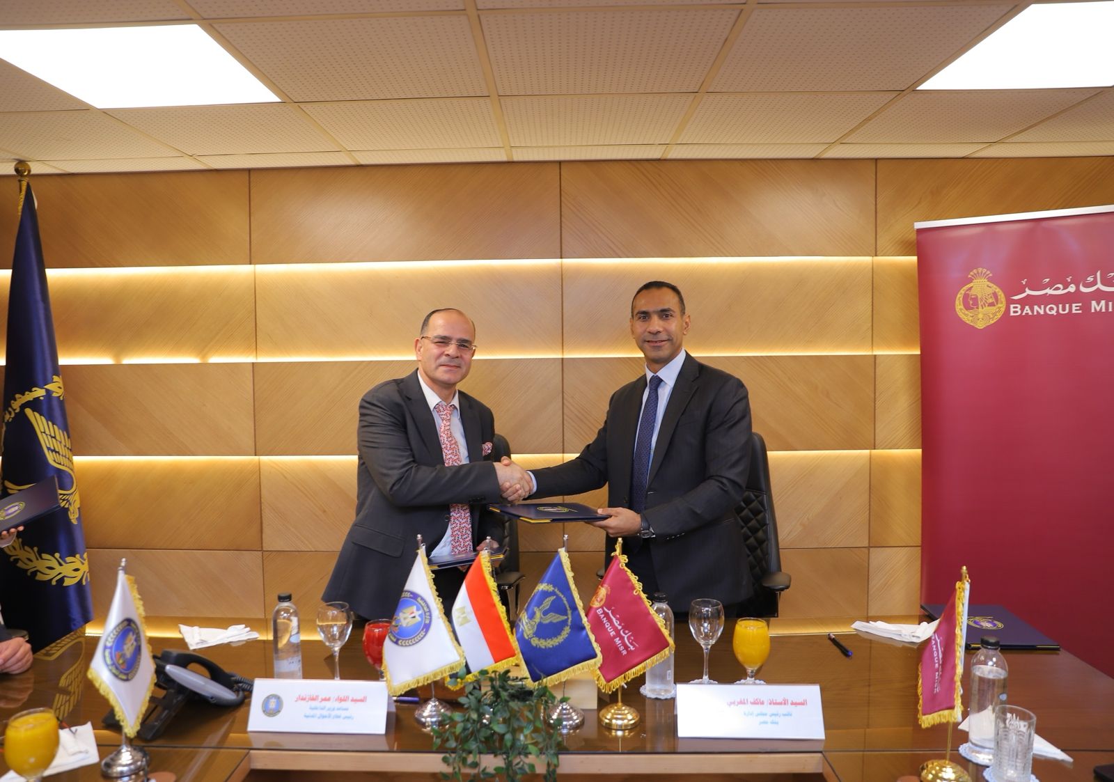 تم توقيع البروتوكولات بحضور السيد اللواء / عمر الخازندار – مساعد وزير الداخلية ورئيس قطاع الأحوال المدنية بالعباسية، وقد قام بتوقيع البروتوكولات السيد الأستاذ / عاكف المغربي – نائب رئيس مجلس إدارة بنك مصر مع السيد اللواء / مصطفي محفوظ – مدير الإدارة العامة لرئاسة قطاع الأحوال المدنية، بحضور السيد اللواء / مروان السماحي – وكيل الإدارة العامة للنظم والمعلومات بقطاع الأحوال المدنية، والسيد الأستاذ / إيهاب درة – رئيس قطاع الفروع والتجزئة المصرفية ببنك مصر، والسيد الاستاذ / معتز مطاوع – رئيس قطاع التجزئة المصرفية ببنك مصر، والسيد الأستاذ / عمرو هاشم – رئيس قطاع العمليات المصرفية ببنك مصر، و لفيف متميز من قيادات البنك و قيادات قطاع الأحوال المدنية.