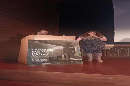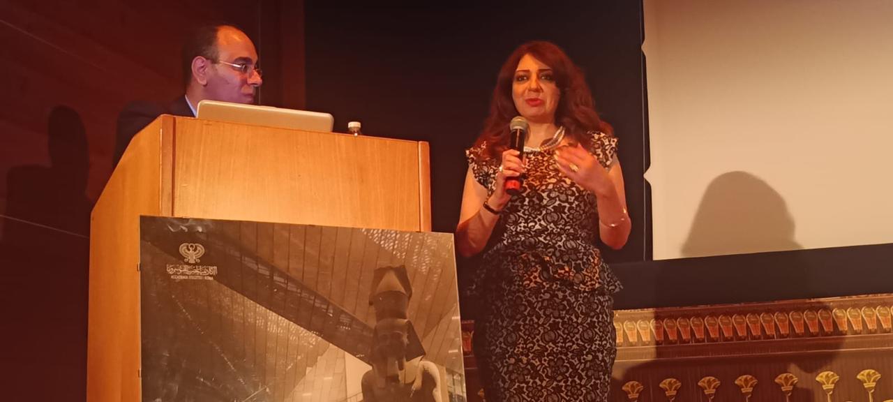 استهلت الأمسية بكلمة ترحيبية لمديرة الأكاديمية، الدكتورة رانيا يحيى، نوّهت فيها بالدور المتجدد للأكاديمية كمؤسسة ثقافية تنشط في مدّ جسور التواصل الحضاري بين مصر وإيطاليا، مؤكدة أن “نشر المعرفة العلمية والتاريخية حول التراث المصري هو إحدى أولويات الأكاديمية في المرحلة الحالية، في انسجام تام مع رؤية الدولة المصرية في تعزيز القوة الناعمة”، كما وجهت تحية تقدير لمعالى وزير الثقافة الاسبق فاروق حسنى صاحب فكرة المتحف المصرى الكبير، ووجهت دعوة للحضور لمشاهدة الحاضر المصرى العريق الذى يجسد النهضة الحضارية التى تشهدها الدولة المصرية في عهد الرئيس عبد الفتاح السيسى.