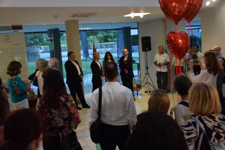 بدأت الامسية بافتتاح معرض فنى للكاريكاتير للفنان الايطالى الشهير اندريا بيكيا، وحملت اعماله الروح المصرية التى غلفت كثير من السياق الفنى لاعماله الابداعية ولاقت استحسان واعجاب الحضور، وعبر بيكيا عن امتنانه لمديرة الاكاديمية واتاحتها الفرصة لتقديم هذا المعرض المتميز، كما اكد على محبته لمصر التى تعيش فى وجدانه وشارك فيها بمعارض فنية لا يمكن ان يغفلها وتمثل له محطة مهمة فى مشواره الابداعى.