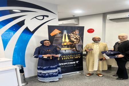 وامتدت الحملة إلى بث فيلم ترويجي ووضع بانرات دعائية داخل استراحات مصر للطيران في مطار القاهرة الدولي، بالإضافة إلى مكاتب الشركة في مصر ومختلف دول العالم، ليكون حلقة تعريفية متكاملة لكل زائر يبدأ رحلته من الجو وصولًا إلى أرض المتحف، بما يعزز حضور الحملة على نطاق واسع ويضمن وصول رسالتها إلى المسافرين والسائحين الدوليين، فضلًا عن استقبال ونقل العديد من الوفود الرسمية المشاركة في الافتتاح عبر خطوطها الجوية.