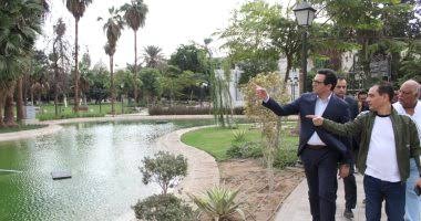 وخلال الجولة، تفقد وزير الثقافة عددًا من المناطق والمكونات داخل الحديقة، من بينها المسرح الروماني، ومنطقة التبة الشجرية، والبحيرة الصناعية التي تبلغ مساحتها نحو 1200 متر مربع وتضم نافورتين وكوبريين بهيكل معدني وأرضيات خشبية، إلى جانب المدرجات والسلالم الحجرية والنافورة الأثرية.