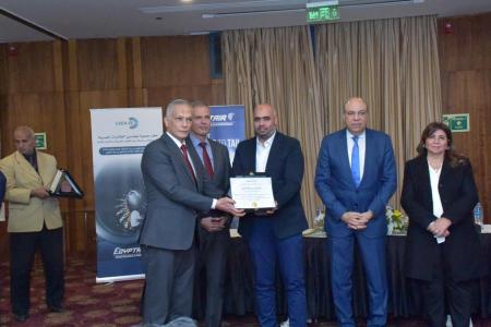 كما قام المهندس مبروك عامر بالإنابة عن المهندس طارق النبراوي نقيب المهندسين بتسليم درع النقابة للمهندس إبراهيم فتحي تقديراً وتكريما لشركة مصر للطيران للصيانة والأعمال الفنية الصرح الهندسي العريق ودورها الريادى فى المنطقه .