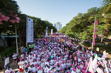 ومع إطلاق آلاف البالونات الوردية، قاد المشاركين في المسيرة والذين بلغ عددهم ما يزيد على 13,000 شخص مجموعة من الناجيات من سرطان الثدي والرعاة الرئيسيون للفعالية المجتمعية، وصاحبهم في ذلك أيضاً فنانين ترفيهيين وقارعي طبول مفعمين بالحيوية والنشاط.