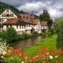 وتشتهر الغابة السوداء بينابيعها المعدنية ويقع كثير من المنتجعات الصحية بما فيها مدينة بادن بادن الشهيرة بجوار هذه الينابيع وينبع من هذه المنطقة نهرا بريج وبريجش اللذان يشكلان بإتحادهما عند مدينة دوناوشينجن على الهامش الشرقي من الغابة السوداء نهر الدانوب أهم وأطول أنهار دول الإتحاد الأوروبي وهذه المدينة مدينة صغيرة تتميز بالشقق الفخمة المفروشة بأفخر الأثاث بجانب المهرجان الشعبي للموسيقى المعاصرة وحديقتها الجميلة التي تستحق الزيارة ومكتبة المحكمة التي تحتفظ بالكثير من المخطوطات الألمانية التي تعود إلي العصور الوسطى وتتميز هذه المنطقة بوجود بحيرات وشلالات وجداول مائية ومراعي خضراء واسعة خاصة في الركن الجنوبي منها المحاذي لسويسرا وتنتج الغابة أخشابا كثيرة وتغرس أشجارا جديدة مكان تلك التي يتم قطعها كما تقع في الجزء الجنوبي من الغابة السوداء سلسلة من قمم الجرانيت المدورة والتي تشكلت منذ العصر الروماني وشكلت الجانب الطوبوغرافي للغابة ونظيرها من الجهة الأخرى في جبال الفوج بفرنسا وفي الجانب الغربي يوجد وادي الراين كما تعد الغابة السوداء مسرح لكثير من الأساطير والقصص الخرافية الألمانية وبوجه عام تعد الغابة السوداء من أجمل الغابات الموجودة في المانيا ولذا يتوافد إليها الآلاف من السياح للإستمتاع بمناخها الجميل ومشاهدة غاباتها الكثيفة والبحيرات الصافية والشلالات والينابيع الحارة وهي تعتبر من أفضل أماكن السياحة في المانيا ويمكن لمن يزورها مزاولة العديد من الأنشطة الترفيهية المسلية والرياضية والثقافية مثل ركوب المناطيد والطيران الشراعي وممارسة رياضة المشي أو الجلوس والإستمتاع بالمساحات الخضراء ومناخها الرائع ومشاهدة الأزهار الملونة والأشجار الكثيفة في الصيف وممارسة التزلج على الجليد في فصل الشتاء ولهواة الدراجات الهوائية يمكنهم إستئجار دراجة وقد حرصت السلطات المعنية في تلك المنطقة على توفير الطرقات البرية الطبيعية التي تسمي فالد فيج التى تخترق الغابات والمراعي مرورا بسفوح وقمم الجبال والتي يمكن الوصول اليها أيضا عبر المقاعد والعربات المعلقة أو التليفريك ثم هبوط الجبال لمن يرغب سيرا على الأقدام ويمكن أيضا زيارة العديد من الأماكن الترفيهية كالحدائق المائية مثل حديقة أكوا فن في بحيرة شلوخزي والواحة المسماة باده باراديس شفارتس فالد التي تتميز بحوض سباحة تحت ظلال النخيل الكاريبي المثير ومشهد بانورامي من السقف الزجاجي الذى يعلوه وهناك العديد من غرف الحمامات البخارية ومجموعة متنوعة من الساونا وكذلك 16 حوض سباحة ذات موجات مثيرة كلها جاهزة في إنتظار الضيوف الذين يزورن الحديقة المائية إضافة لوجود الألعاب المسلية المناسبة للعائلات والأطفال مثل قطار الإنزلاق هازن هورن وجسر شتاين مازن بارك وحديقة الثلج وعلاوة علي ذلك يمكن الإستمتاع بالمعالم الثقافية العديدة الموجودة في الغابة السوداء مثل المتاحف الصغيرة المتناثرة التي تتحدث عن تاريخها وأساطيرها وآثارها في القرون الماضية مثل متحف الساعة ومتحف الغابة السوداء الذي يضم نحو 18 غرفة للعرض الفريد والذي يكشف عن أنماط الحياة والتقاليد في منطقة الغابة السوداء الفريدة من نوعها عبر العصور وهو يحتوي على مجموعة من الفنون والحرف اليدوية وكذلك قطع الأثاث والتحف الشخصية ومن الجدير بالملاحظة أيضا أن متحف الغابة السوداء يوجد في الهواء الطلق قرب منطقة تسمي جوتاخ جنبا إلى جنب مع المباني الأثرية التاريخية الأخرى المستخدمة كخلفية رائعة للمتحف .