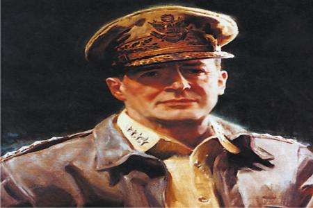 دوجلاس ماك آرثر جنرال أميريكي من أبرز القادة العسكريين الأميريكيين خلال النصف الأول من القرن العشرين الماضي حيث أظهر نبوغا مبكرا وتفوقا نادرا في مجال الإستراتيجية العسكرية وكان هو من وقع الإختيار عليه ليقود قوات جنوب غرب المحيط الهادى في الحرب العالمية الثانية مابين عام 1939م وعام 1945م وأشرف على إحتلال الحلفاء الناجح لليابان وصار الحاكم العسكرى لها بعد الحرب كما كان هو في البداية قائد قوات الأمم المتحدة في الحرب الكورية التي إستمرت مابين عام 1950م وعام 1953م وكان دوجلاس ماك آرثر شخصية مقبلة على الحياة مثيرة للجدل وموهوبة وصريحة وتميز بشخصيته القوية والتي تتميز بالجرأة والثقة الشديدة بالنفس كما تميز بمظهره الجذاب وقبعته المميزة ذات الإطار الذهبي والتي تزينها شارات المارشالية ونظارته الشمسية والغليون الذى لا يفارق فمه كما كان محبوبا ومطاعا من رجاله ومعاونيه ومن جانب آخر فقد كان في نظر الكثيرين يعد مغرورا حيث كان دائما ما يتشبث برأيه ولا يتقبل أى صورة من صور النقد مما كان يسبب له الكثير من الخلافات والمشاكل مع رؤسائه .