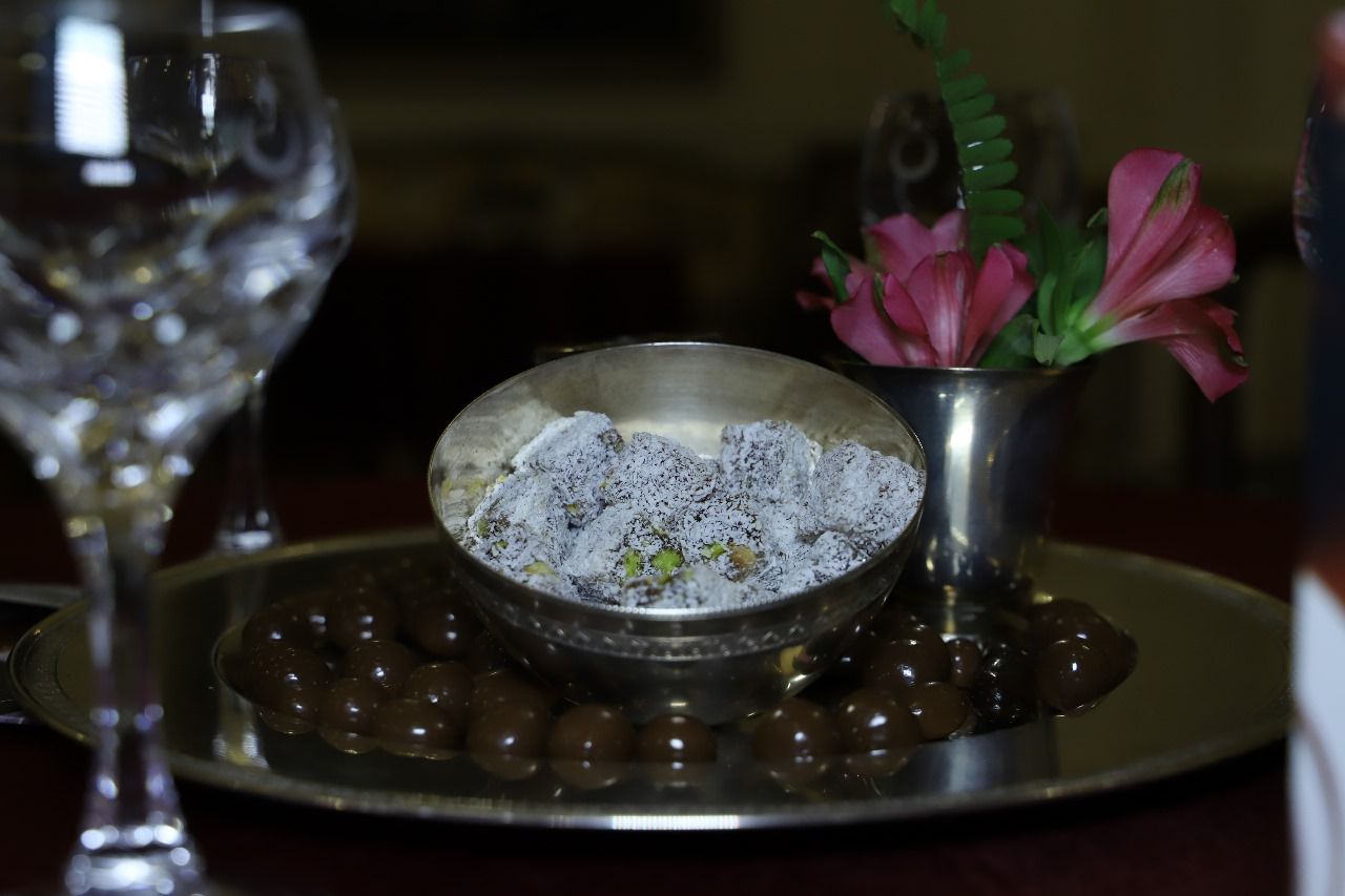 وفي الحفل تم تقديم الحلويات والأطباق المالحة التي أعدها مطبخ وطاهي السفارة.